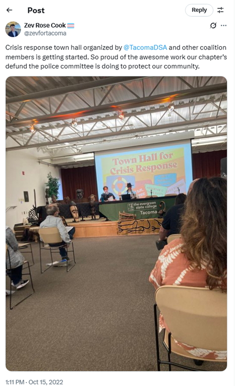 - Zev Cook “Defund the police” quote: X post, Oct. 15, 2022 (screen shot)